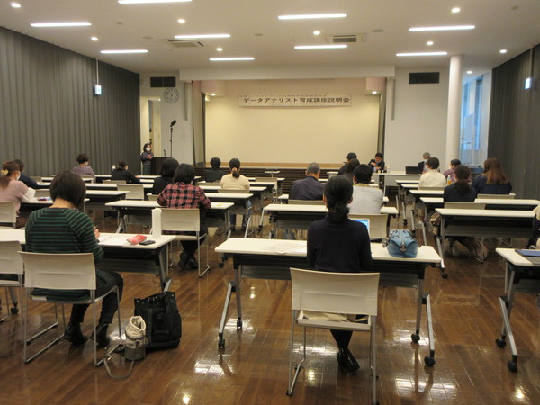 第2回データアナリスト育成講座事業説明会(終了) 2021.11.30 11月27日(土)に第2回データアナリスト育成講座事業説明会を開催いたしました。マギー株式会社 山川朝賢社長も神奈川県からお越しいただき、シングルマザー人材育成に至った経緯についてお話しくださいました。現在講座受講中である第1期生も参加し、参加者の質問に講座受講者の視点から答えてもらったことで、受講に関しての疑問や不安について、わかりやすくお答えできた説明会になったと思います。説明会に参加いただいた皆様、ありがとうございました。 【説明会の様子】 < 12月11日(土)子育て世代のくらしとお金の教室データアナリスト育成講座事業説明会を開催します。 >