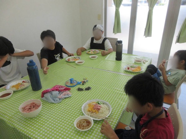「夏休み料理教室」を開催しました!!! 2025.09.05 7月22日から8月18日までの期間、応援クラブの子どもたちと職員で、夏休み料理教室を実施しました (^▽^)/ 7/22(火)冷やしそうめん、7/29(火)餃子、8/5(火)たこ焼き、8/12(火)カレー、8/18(月)ピザ作りをし、お好みサイズに野菜をカットしたり、お米の炊き方を学んだり、料理の焼き加減を調整したり、皆で協力して、美味しい食事を作る事ができました✨ 料理教室で得られた知識や技術で、お母さんたちの手伝いが積極的に出来るようになったら、とても素敵ですね⭐⭐⭐ < 「物づくり教室」を行いました!!!技術力向上支援事業「ビジネススキルアップ講座」が開催されました! >
