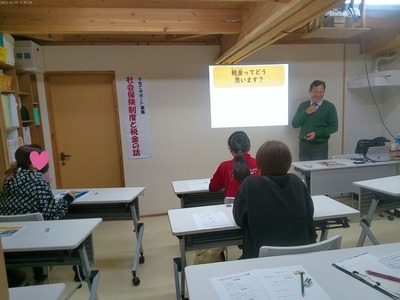 子育てサポート事業 金銭教室 2026.02.04 1月23日(金)「社会制度と税金の話」と題して金銭講座を開催しました。講師はFP・行政書士の大城人志氏です。今回は、国民健康保険・国民年金と健康保険・厚生年金の違い、未納時のデメリット、マイナ保険のメリット等について資料を交えて、分かりやすく説明してくださいました。受講者からは、「曖昧だった知識が整理された」ことや「将来を見据えた働き方や自助努力による貯蓄等、長期的な家計運営をあらためて考える貴重な機会になった」との感想がありました。 親子交流事業 クリスマス会 >